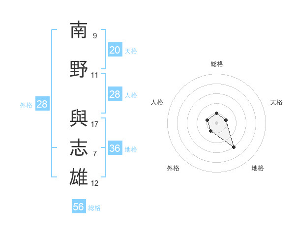 南野 與志雄さんを姓名の画数から五運を鑑定