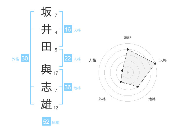 坂井田 與志雄さんの総格は52画の4点!
