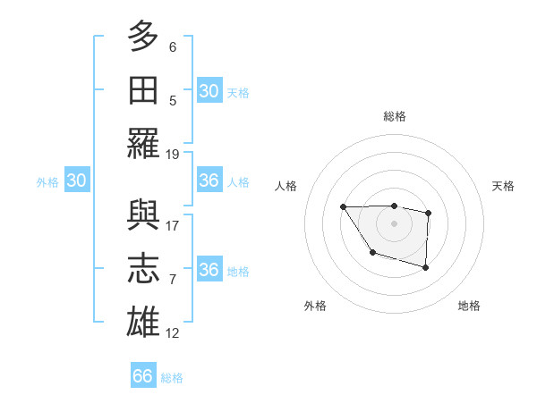 多田羅 與志雄さんの総格は66画の1点!