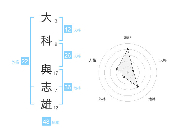 大科 與志雄さんを姓名の画数から五運を鑑定