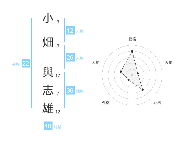 小畑 與志雄さんを姓名の画数から五運を鑑定