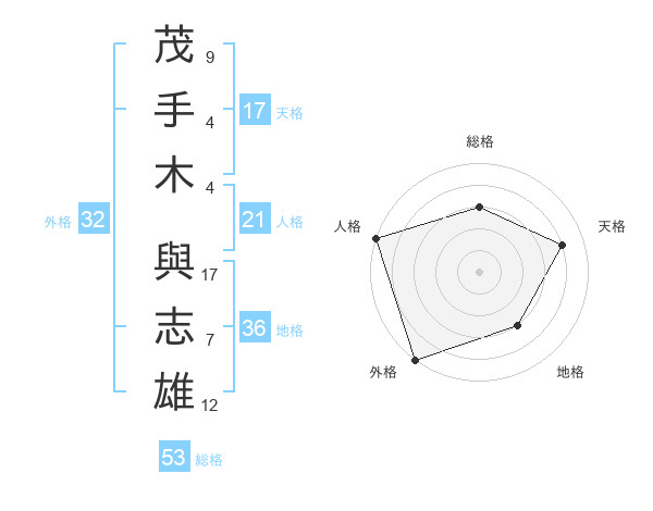 茂手木 與志雄さんの総格は53画の3点!