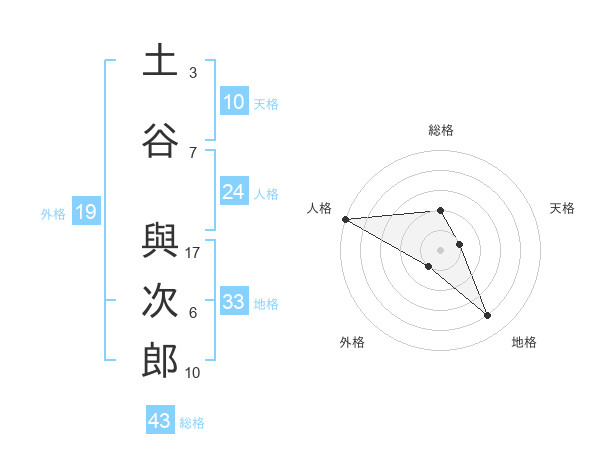 土谷 與次郎さんを姓名の画数から五運を鑑定