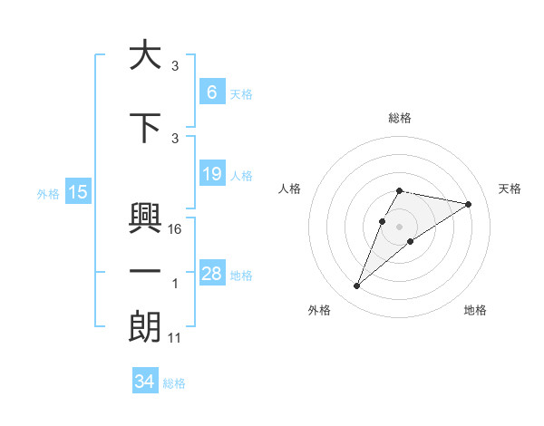 大下 興一朗さんを姓名の画数から五運を鑑定