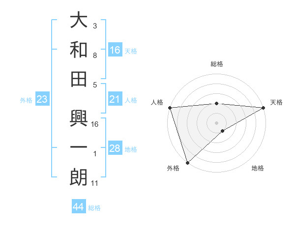大和田 興一朗さんを姓名の画数から五運を鑑定
