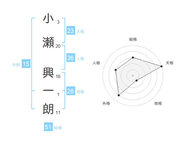 小瀬 興一朗さんを姓名の画数から五運を鑑定