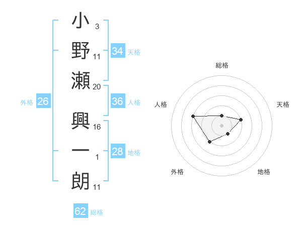 小野瀬 興一朗さんを姓名の画数から五運を鑑定