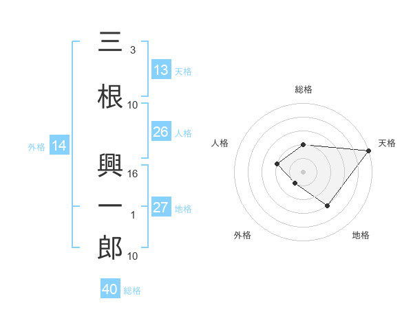 三根 興一郎さんを姓名の画数から五運を鑑定