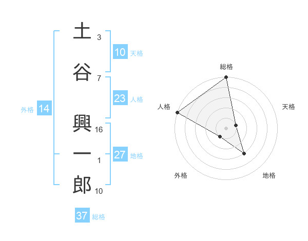 土谷 興一郎さんを姓名の画数から五運を鑑定