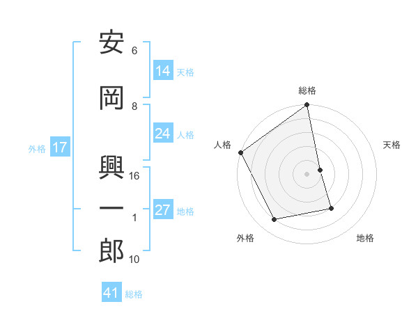 安岡 興一郎さんを姓名の画数から五運を鑑定