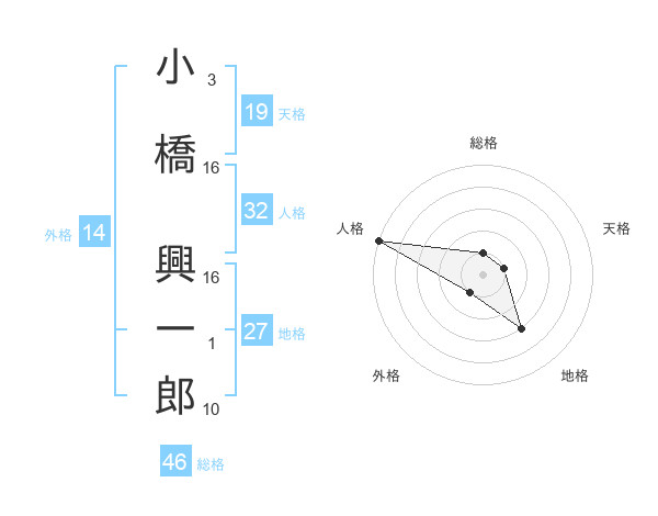 小橋 興一郎さんの総格は46画の1点!