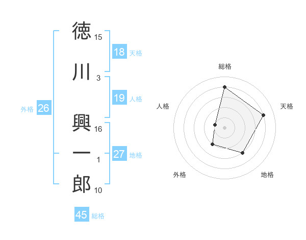 徳川 興一郎さんを姓名の画数から五運を鑑定