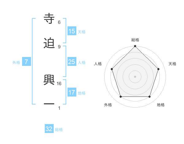 寺迫 興一さんを姓名の画数から五運を鑑定