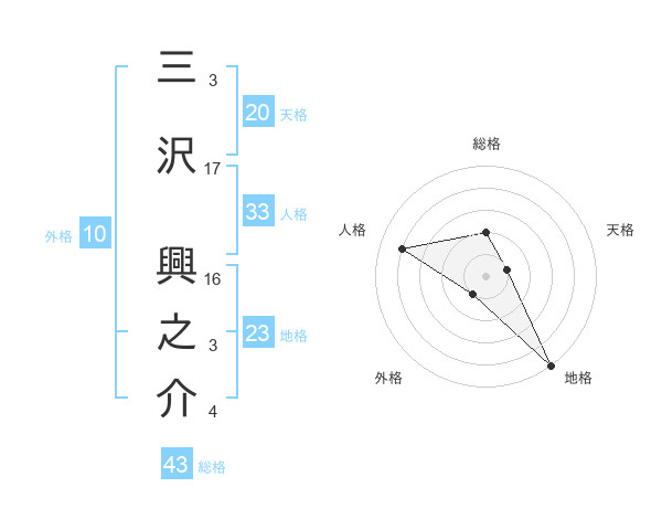三沢 興之介さんを姓名の画数から五運を鑑定