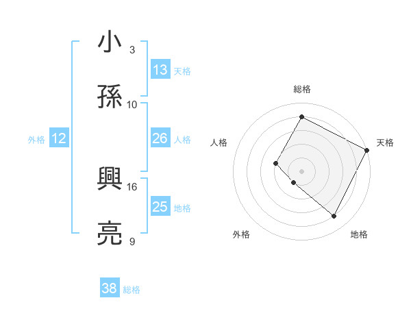 小孫 興亮さんを姓名の画数から五運を鑑定