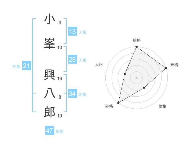 小峯 興八郎さんを姓名の画数から五運を鑑定
