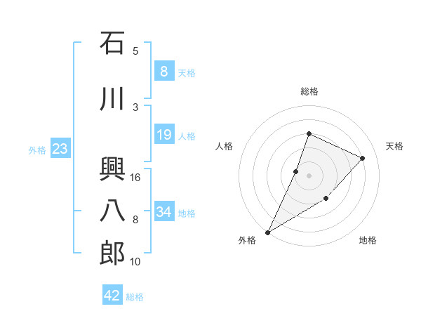 石川 興八郎さんを姓名の画数から五運を鑑定