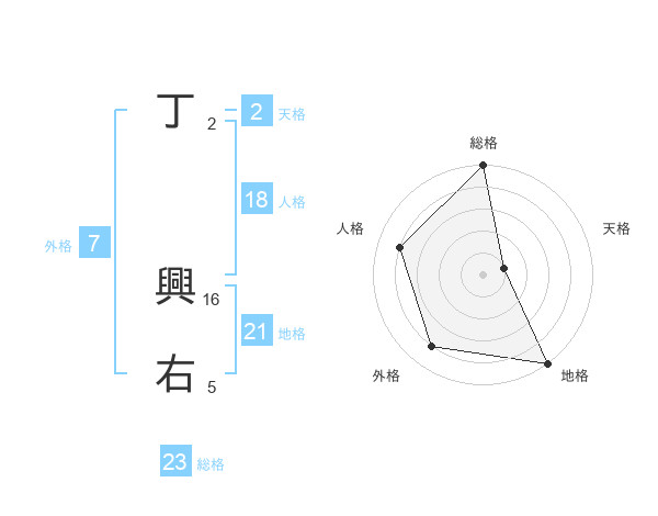丁 興右さんの総格は23画の5点!