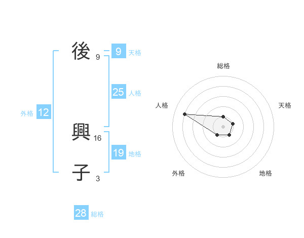 後 興子さんの総格は28画の1点!