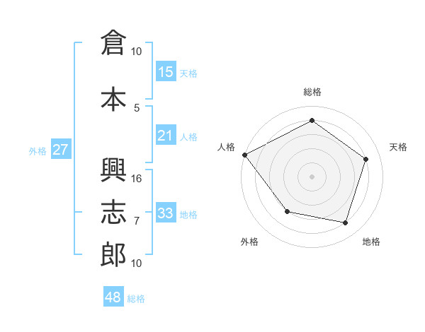 倉本 興志郎さんを姓名の画数から五運を鑑定
