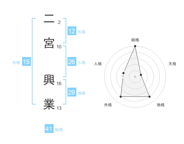 二宮 興業さんの総格は41画の5点!