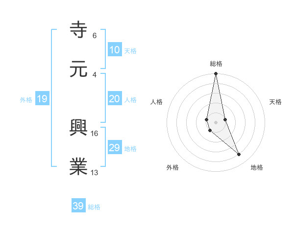 寺元 興業さんの総格は39画の5点!