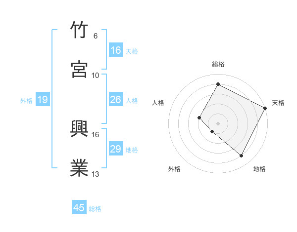 竹宮 興業さんの総格は45画の4点!