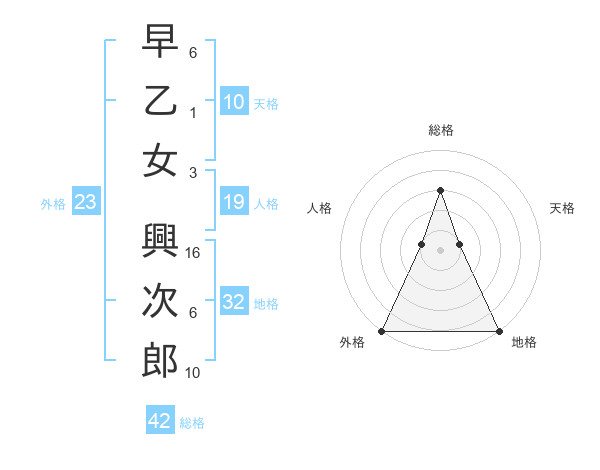 早乙女 興次郎さんを姓名の画数から五運を鑑定