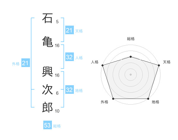 石亀 興次郎さんの天格は21画の5点!