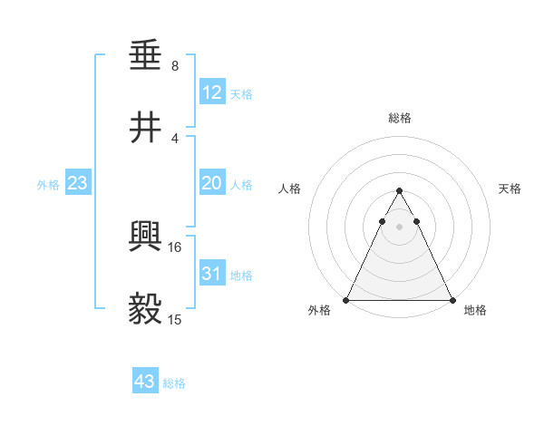 垂井 興毅さんの総格は43画の2点!