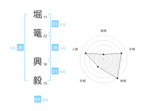 堀篭 興毅さんを姓名の画数から五運を鑑定
