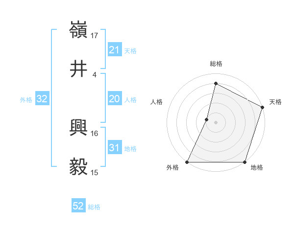 嶺井 興毅さんの外格は32画の5点!