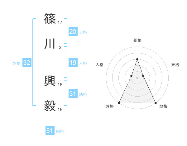 篠川 興毅さんの総格は51画の3点!