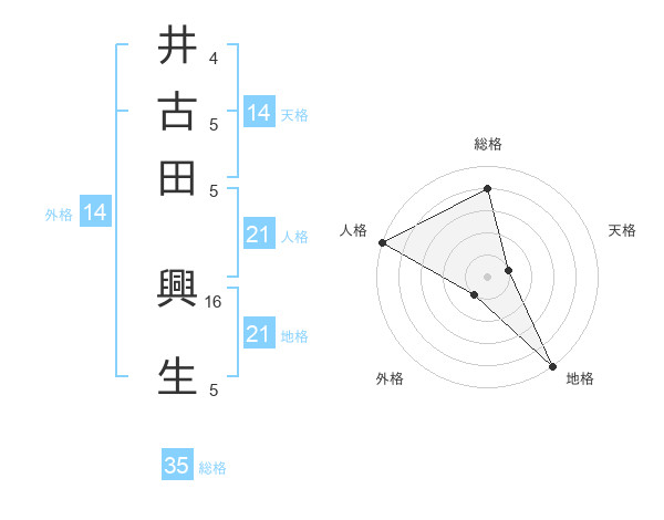 井古田 興生さんの総格は35画の4点!