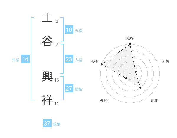 土谷 興祥さんを姓名の画数から五運を鑑定