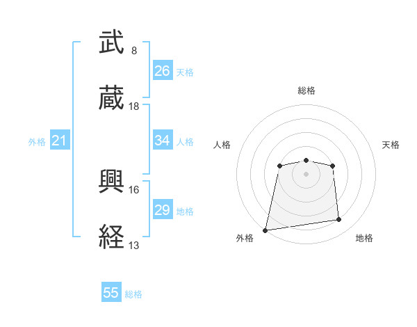武蔵 興経さんを姓名の画数から五運を鑑定