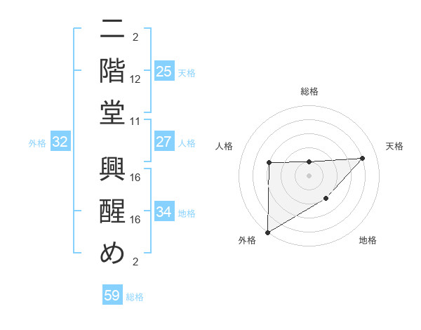 二階堂 興醒めさんを姓名の画数から五運を鑑定