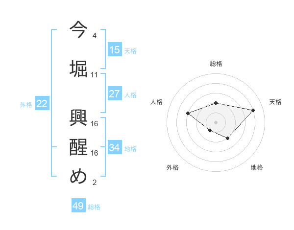 今堀 興醒めさんを姓名の画数から五運を鑑定