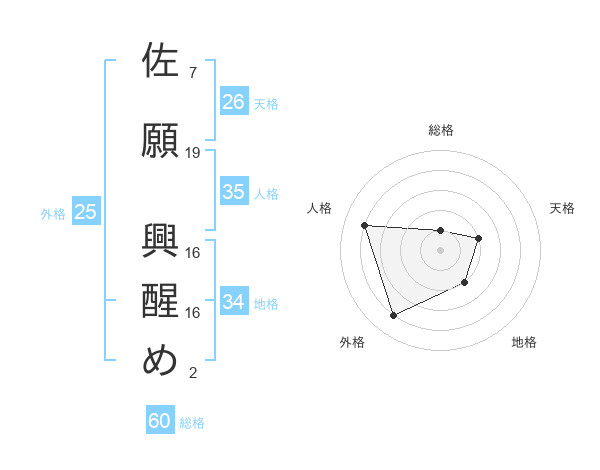 佐願 興醒めさんを姓名の画数から五運を鑑定