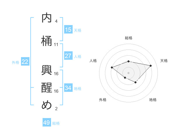 内桶 興醒めさんの総格は49画の2点!
