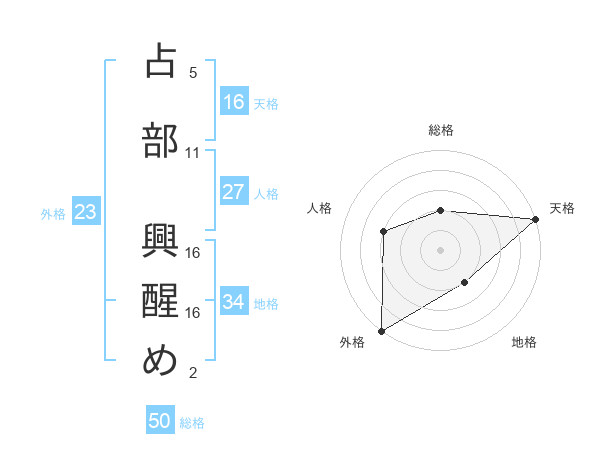 占部 興醒めさんを姓名の画数から五運を鑑定