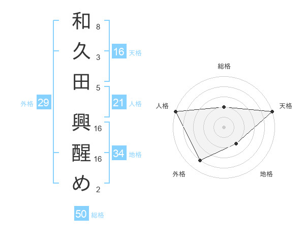 和久田 興醒めさんの総格は50画の2点!