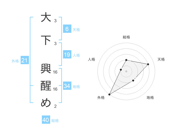 大下 興醒めさんを姓名の画数から五運を鑑定