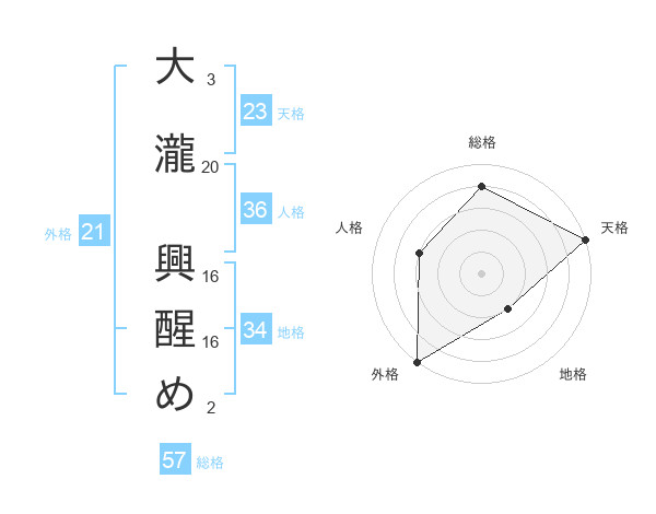 大瀧 興醒めさんを姓名の画数から五運を鑑定
