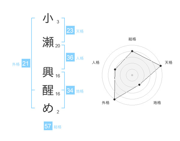 小瀬 興醒めさんの天格は23画の5点!