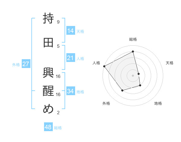 持田 興醒めさんの総格は48画の4点!