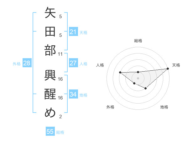 矢田部 興醒めさんを姓名の画数から五運を鑑定