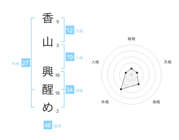 香山 興醒めさんを姓名の画数から五運を鑑定