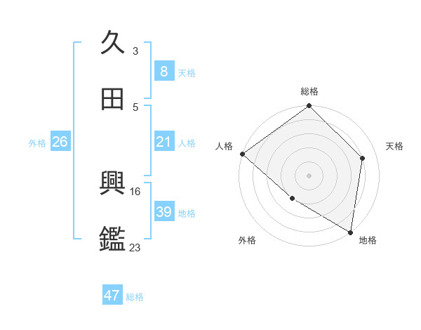 久田 興鑑さんを姓名の画数から五運を鑑定