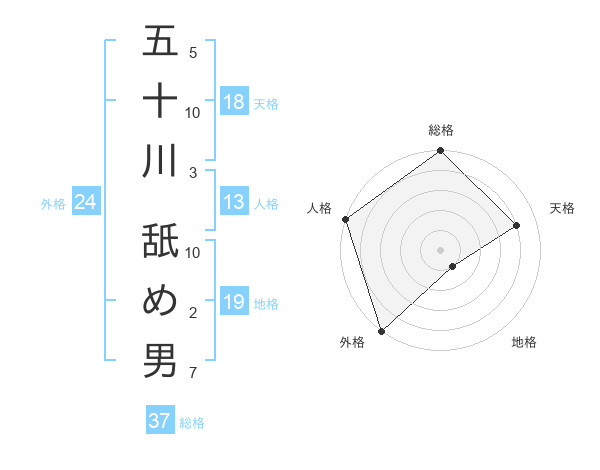 五十川 舐め男さんの総格は37画の5点!